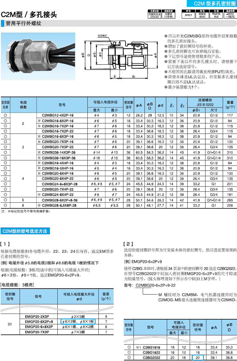 ·用以补充C2M5BG型的电缆外径和根数的多孔密封接头。